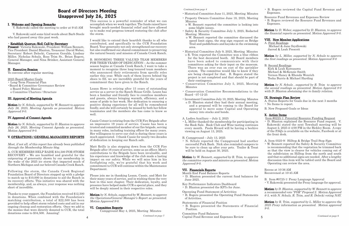 Board of Directors Meeting Unapproved July 26, 2025