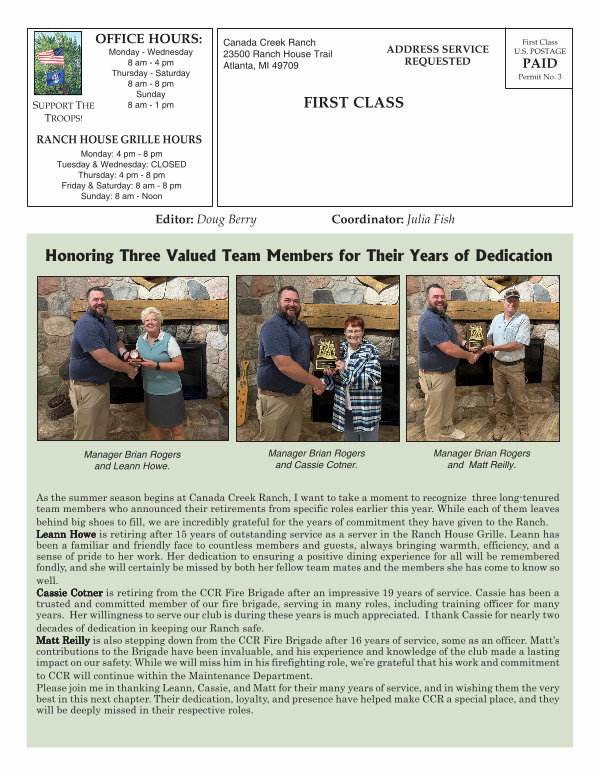 As the summer season begins at Canada Creek Ranch, I want to take a moment to recognize three long-tenured team members who announced their retirements from specific roles earlier this year. While each of them leaves