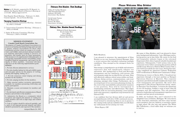 Nina brings a comprehensive set of skills and extensive experience that will significantly enhance our operations . Her background in Food and Beverage management and her familiarity with private club environments make her an ideal fit for our team . Nina will effectively address critical areas within our frontof-house dining services , communications , and event planning , amongst other things . Furthermore , she is an integral part of our succession planning strategy . In the event of my unavailability and potential vacancies in key positions , Nina will be instrumental in maintaining continuity and effectiveness . This aligns perfectly with our succession planning / cross-training goals and represents a significant step forward for our beloved CCR .