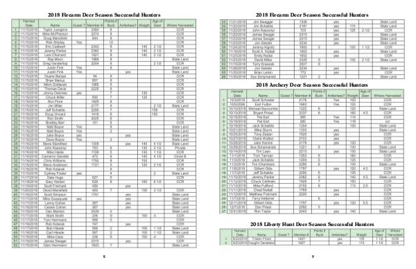 2018 Firearm Deer Season Successful Hunters 2018 Archery Deer Season Successful Hunters 2018 Liberty Hunt Deer Season Successful Hunters 9