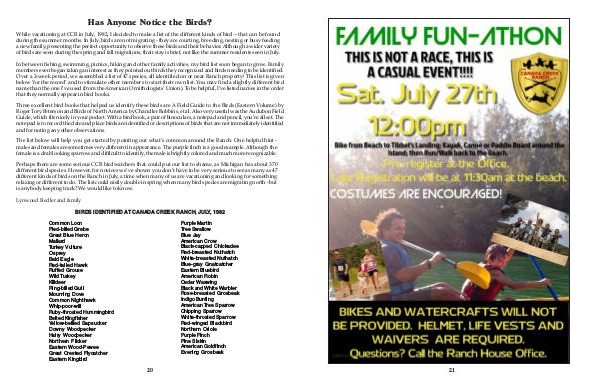 different kinds of birds on the Ranch in July, a time when many of us are vacationing and looking for something