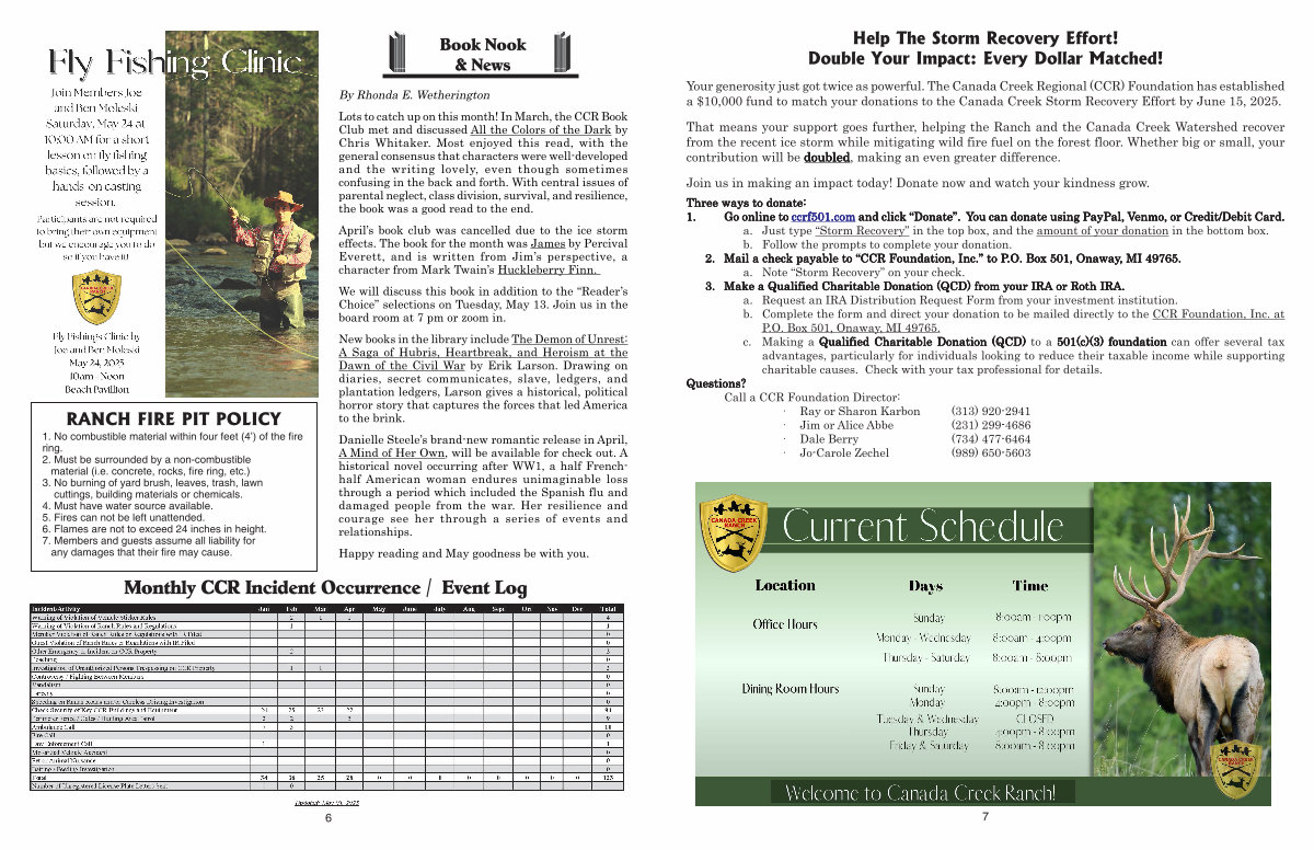 Mail a check payable to“ CCR Foundation, Inc.” to P. O. Box 501, Onaway