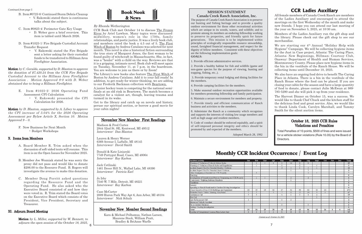 CCR Book Club met October 14 to discuss The Frozen River by Ariel Lawhon. Many topics were discussed: midwifery, women’ s role in the 1700s, family relationships, and poetic justice. It was a lively book club, and members rated the book a 4.5 out of 5. The First Witch of Boston by Andrea Catalano was selected for next month. This novel is also a historical fiction surrounding the true story of Margaret Jones, the first woman to be found guilty of witchcraft in Massachusetts. She, in fact, was a“ healer” with a child on the way. Reviews are that it is a gripping, intimate novel. Book club will meet again on Tuesday, November 11, at 7 p. m. in the boardroom. You are welcome to join us there or by Zoom!