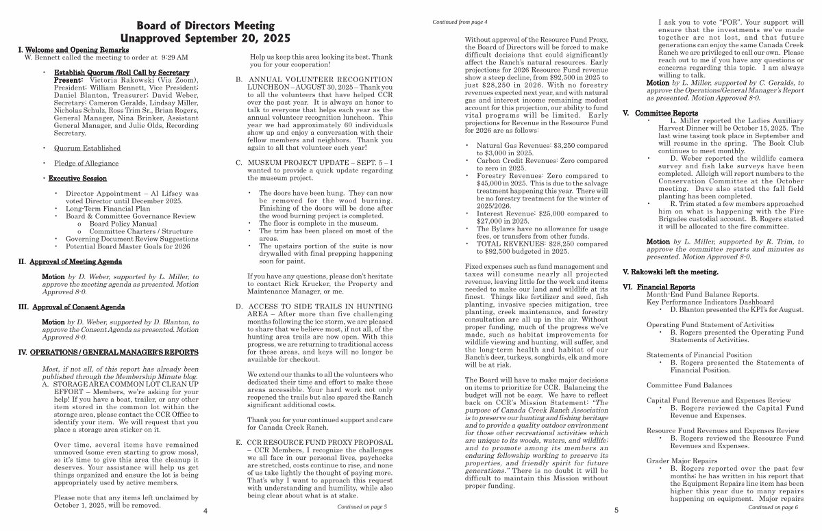 • Director Appointment – Al Lifsey was voted Director until December 2025.